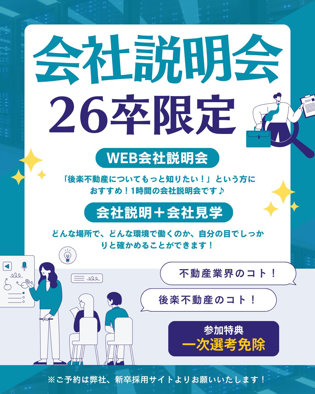 【2026卒限定】新卒向け会社説明会 | まだ間に合います。2026年1月も採用継続中!!【後楽不動産】