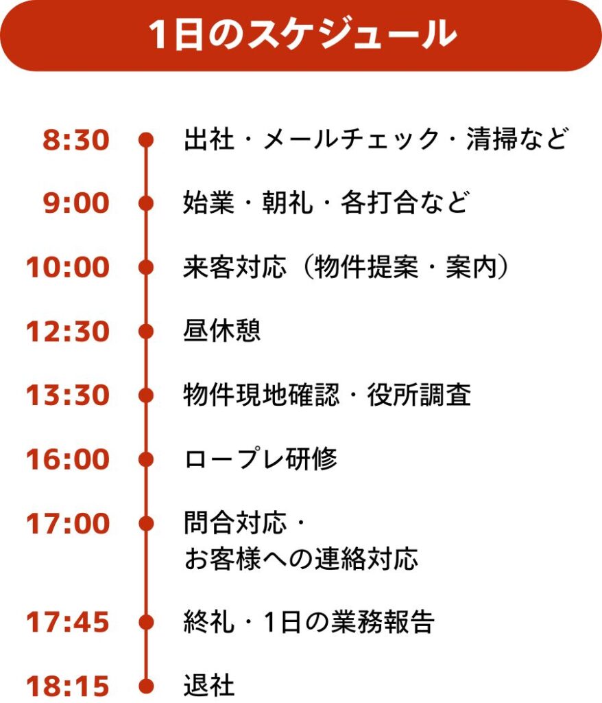 | 福利厚生・社内制度 | ・健康保険、厚生年金保険、労災保険、雇用保険完備 ・定期健康診断 ・出産お祝い金制度 ・勤続お祝い金制度(3年目・5年目以降) ・仲介手数料社員割引 ・互助会制度 ・社内評価制度 ・教育・研修制度 |