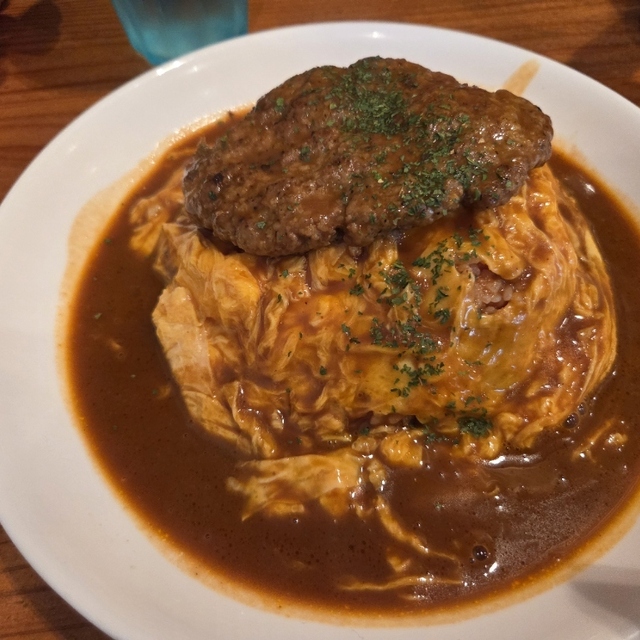 見た目はかなりのボリュームで「食べきれるかな…?」と思っていたのですが、味付けがしつこくなく、最後まで飽きずにぺろりと完食。とろける卵、ジューシーなハンバーグ、コクのあるチーズ、それぞれの魅力がしっかり感じられる、大満足の一皿でした。