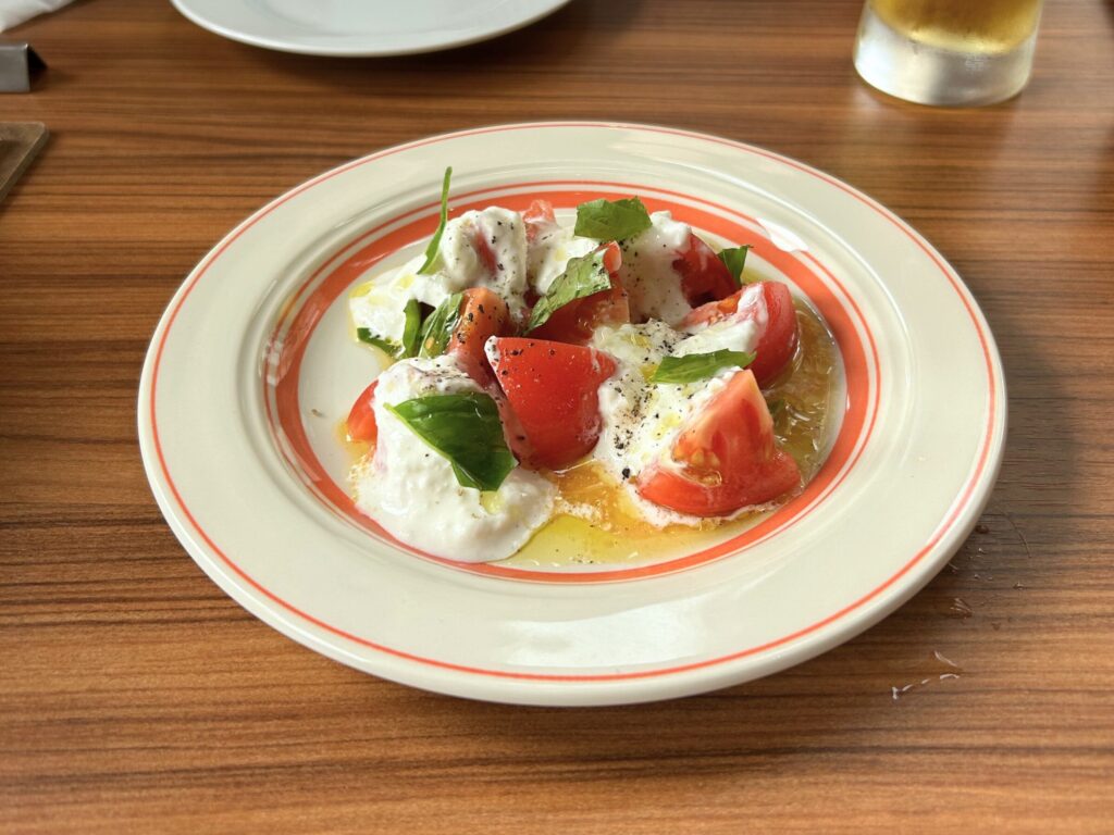 - 岡山県産トマトとストラッチャテッラチーズのカプレーゼ