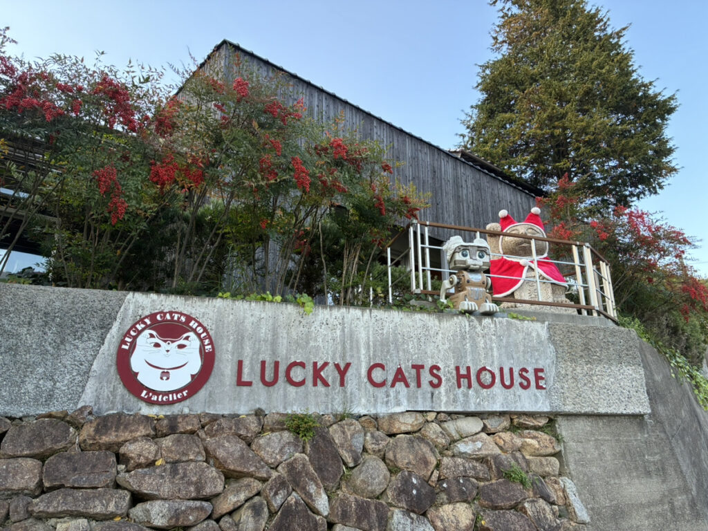 山道をどんどん進んでいくと猫のオブジェが見えてきます。