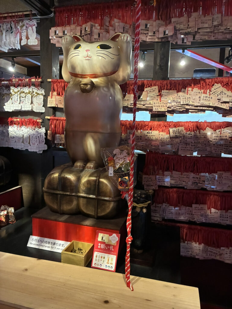 大きな招き猫が2体飾られている神社のようなところのありご利益ありそうでした。